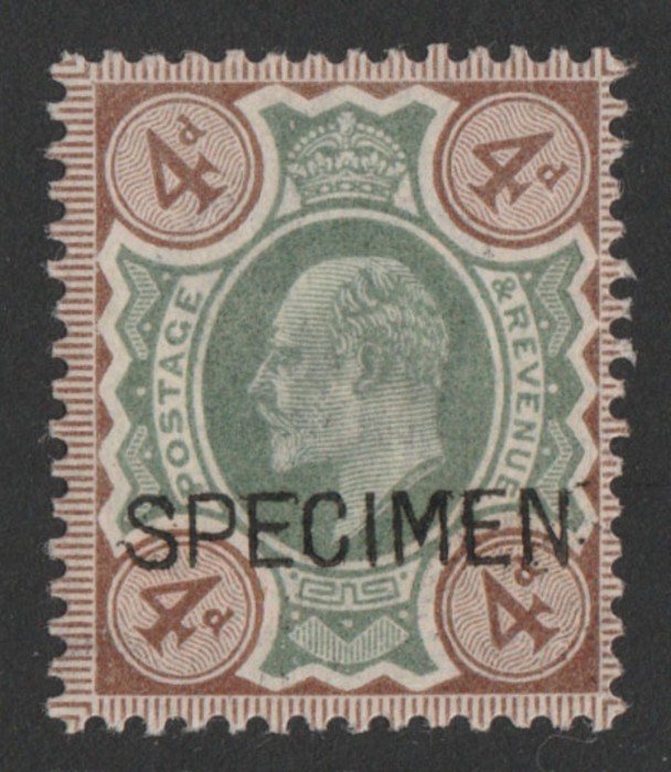 red, DLR printing, opt SPECIMEN (SG type 17), wmk Imperial Crown inverted. VF fresh MNH. SG 219wis, SG Spec M5au cat £400 for M, should be at least double, £800 MNH. Rare genuine. 2021 Ceremuga photo cert (P) (Image1)