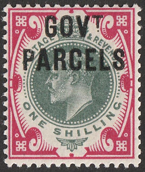 opt KEVII 1/- green & carmine. VF fresh MNH. Scott O43 cat US$1550 for M, SG O78 cat £1350 for M, should be at least double, £2700 MNH. Rare genuine example & certificate can be obtained on request. (P) (Image1)