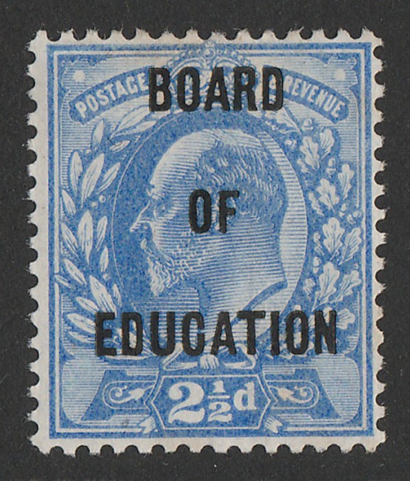 EDUCATION' opt KEVII 2½d ultramarine. Superb fresh M, with original gum & beautiful bright colour. Scott O69 cat US$5750, SGO85 cat £5000. Very rare genuine & certificate can be obtained on request. (P) (Image1)