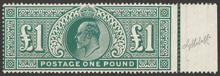 £1 deep green, Somerset House printing. VF fresh MLH Scott 142b cat US$2300. SG Spec M56. SG 320 cat £2000. Rare mint top values. (P) (Image1)