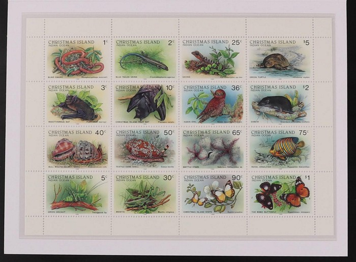 575 imageChristmas Island: 1987-89 Wildlife 1c-$5 sheetlet of 16, ea with 1988 imprints as base of all stamps, from presentation packs. VF fresh MNH. SG 229a cat £180. Retail $475. Scarcest issue of Christmas Island. (5 sheets) (Image1)