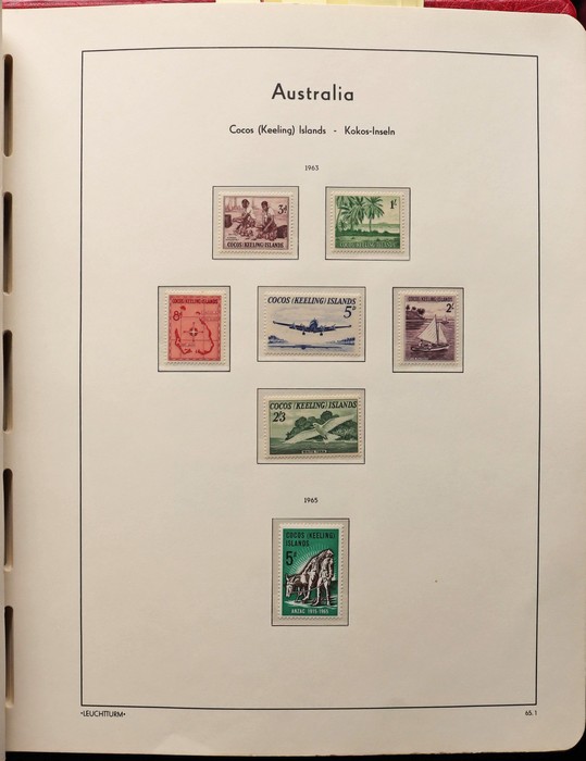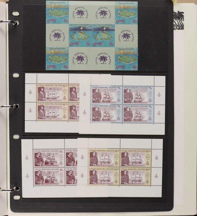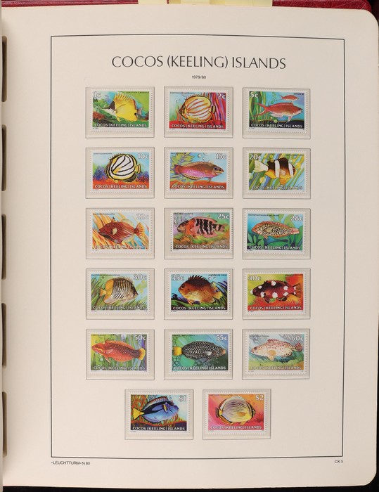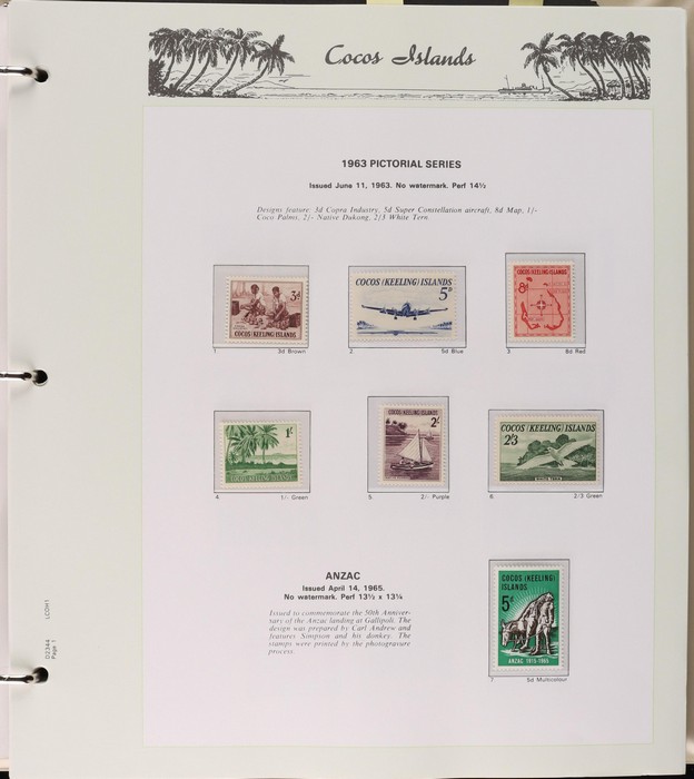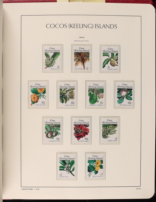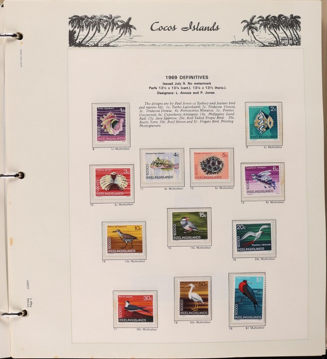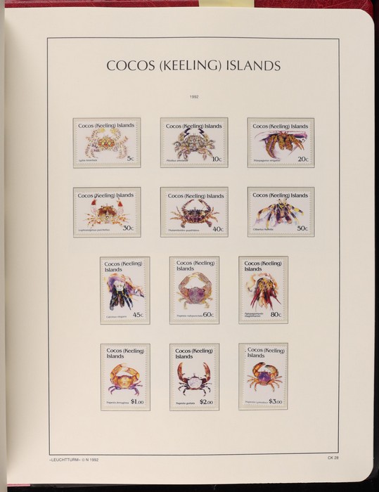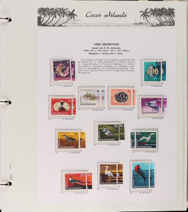 580 imageCocos & Keeling Islands 1963-2014 collection in Lighthouse Country hingeless pages album & blank pages to 2020 inc 1963 set to 2/3, 1982 Butterflies to $3, 1985 Shells to $3, 1988 Flora to $3, 1990 Surcharges inc SG O1 CTO (cat £120), 1992 Crustaceans set to $3, 1995 Marine Life set to $5. Also stamp booklets 1 & 2. Mostly comp, many sets & M/S, all diff. VF fresh MNH. FV $350, retail $1300 + $200 for album, total $1500+. (500, 20+ M/S) (Image1) (Image2) (Image3) (Image4) (Image5) (Image6) (Image7) (Image8) (Image9) (Image10) (Image11) (Image12) (Image13)