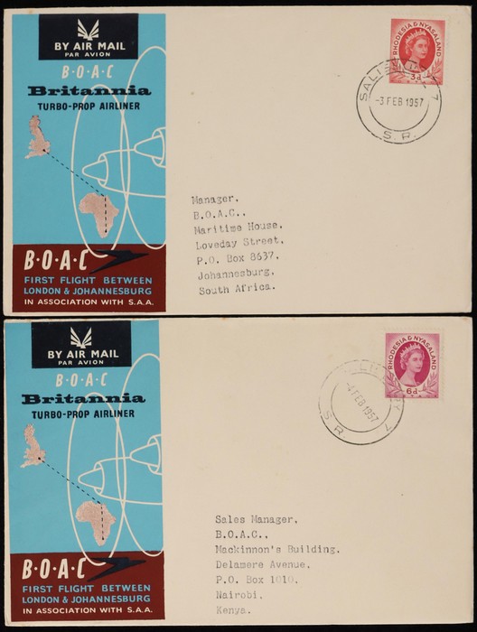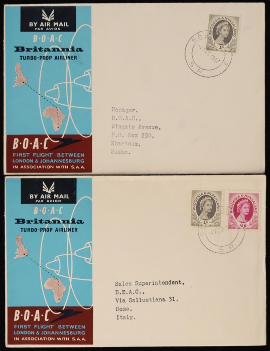 Johannesburg FFC intermediates all from Salisbury Sthn Rhodesia to Sth Africa or return flight to Kenya, Sudan, Italy & GB. (5) (Image1) (Image2)