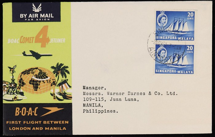 Manila FFC,, plus return flight & intermediates to Manila from Rome, Egypt, Pakistan, India & Singapore. (7) (Image1) (Image2)