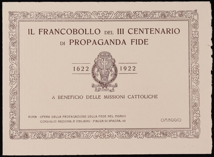 Tercentenary of Congregation set 20c-1L 'Di Propaganda Fide' in special official presentation booklet with opt blks of 9 of ea value attached by to selvedge. Superb fresh MNH. SG 1-4. Sass 1-4 cat €1350+ as loose stamps, plus premium for rare