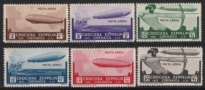 Zeppelin Airmail set 3L - 20L. VF MNH, some tropicalised perfs. SG 102-07 cat £70 for M, should be at least double, £140 MNH. Sass A12-17 cat €300. (6)