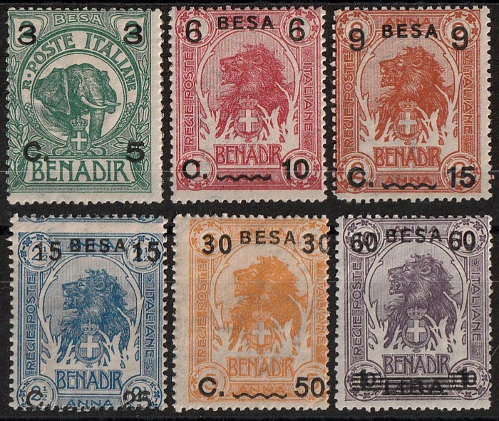 Surcharge set 3b on 5c on 2b - 60b on 1L on 10a. VF fresh M/MLH. SG 23-28 cat £190. Sass 24-29 cat €200. (6) (Image1)