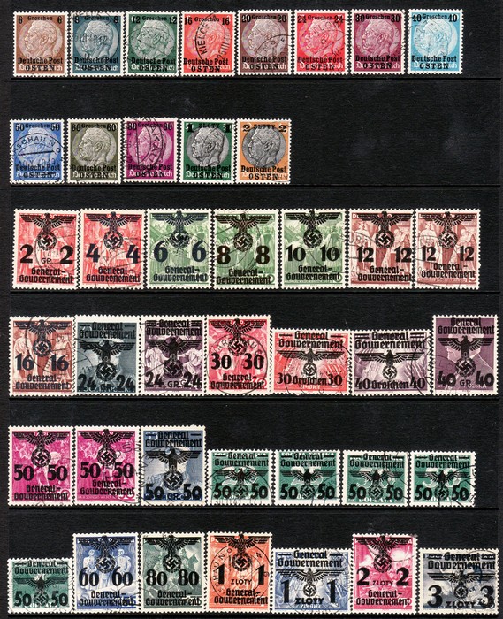 628 imageGerman Occup Poland-General Govt: 1939-45 collection Used comp inc 1939 opt Hindenburg set to 2z. 1940 Eagle & Swastika opt set to 3zl inc 12g & 50g both types. 1940-41 Views set. 1941-44 Hitler set to 1.60z. 1944 5th Anniv 10z. 1940 Official set large to 5z & small to 50g thematics plus scarce 1941 Radio licence 'U' & 'A' set of 2. VFU. Mi cat €487. SG cat £575+. (169). (Image1) (Image2) (Image3) (Image4) (Image5)
