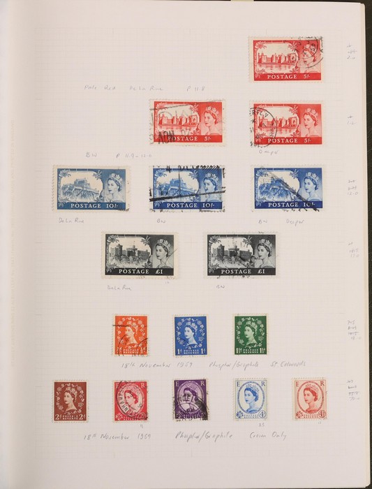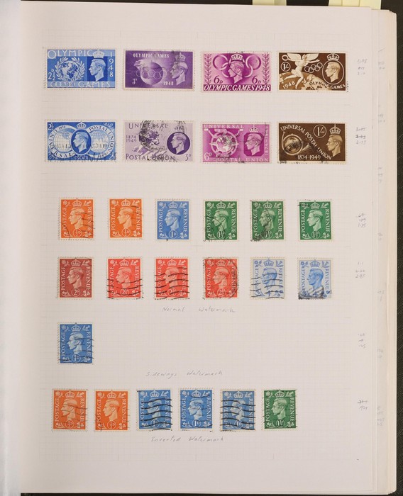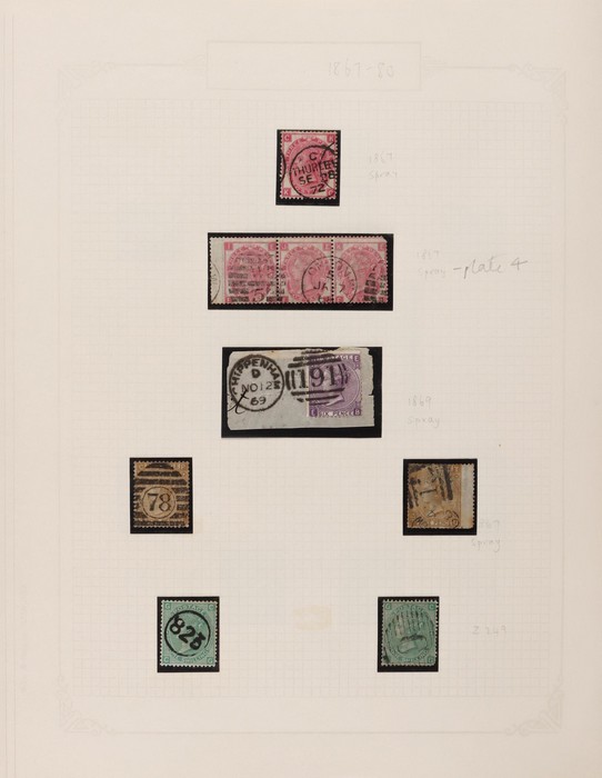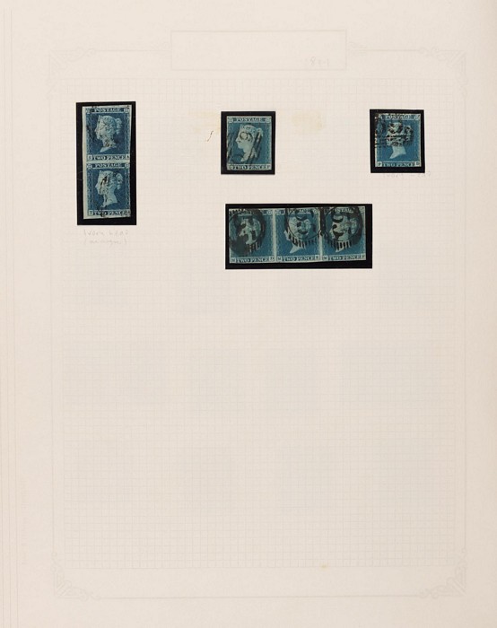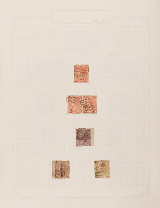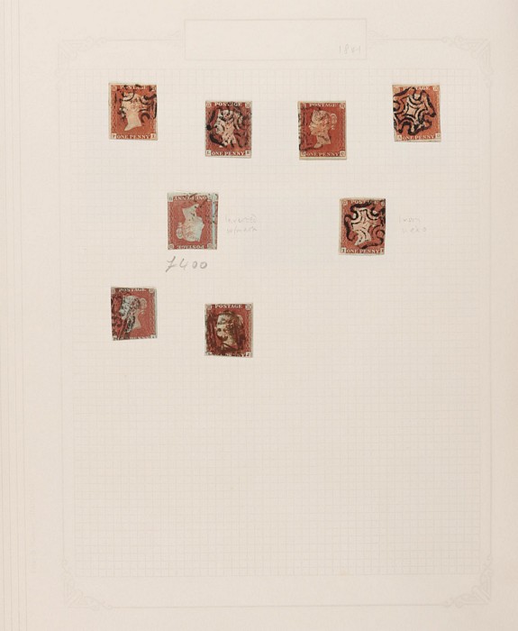 643 imageGreat Britain: 1841-1970 collections in contemporary springback album with 1841 QV 1d red-brown imprint (37, cat £1100) inc Maltese Cross & numeral cancels, plus wmk INV (SG 8Wcat £400). 1841 QV 2d blue imprint (7, cat £700) inc vert pr & horiz strip of 3. 1854 QV blued paper (10, cat £220). 1854 QV no cnr letters 4d carmine (6), 2d violet (2) & 1/- green (cat £1500). 1862-64 small uncoloured letters 4d (3), 6d, 9d (2) (cat £1540). 1865-80 large uncoloured letters with 3d (4) inc strip of 3, 4d (15) inc Alexandria, Constantinople & Malta pmks, 6d (3), 9d (3) & 1/- (2) cat £1600. 1870 Recess issues with ½d (6, £180) & 1½d (4, £300). 1873-80 QV coloured letters to 1/- (11) inc 2½d mauve wmk Anchor (cat £120) & wmk Spray 3d rose UN (cat £525), 6d U (2, £180) & 1/- green (£160). 1880 QV wmk Crown (7) to 1/- inc 3d rose UN (£500) & 1/- brown U (2, £340). 1890s QV (25) to 10d. 1901-10 KEVII (56) to 1/-. 1934 KGV Seahorses trio to 10/- (£190). 1943-47 KGVI opt MEF set of 11 to 10/- Mint. 1952 KGVI Defs to £1 brown U. QEII 1953-69 Pics/Commems, plus Castles to £1. Generally attractive F-VFU with some mint sighted. SG cat £9300 to 1952 = A$18,000. The QV issues in above average condition. (730) (Image1) (Image2) (Image3) (Image4) (Image5) (Image6) (Image7) (Image8) (Image9) (Image10) (Image11) (Image12) (Image13) (Image14) (Image15) (Image16) (Image17) (Image18) (Image19) (Image20)
