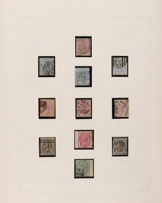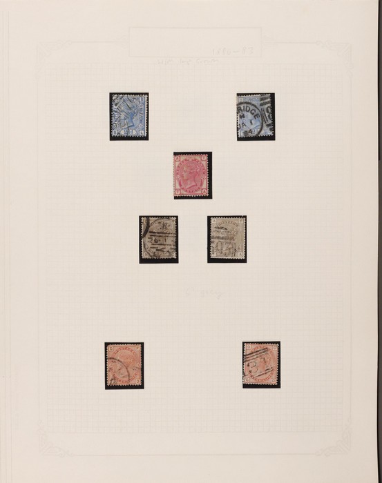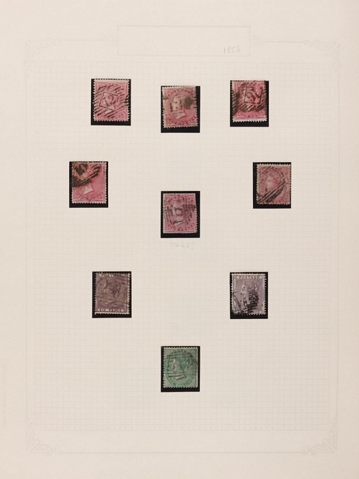 644 imageGreat Britain: 1855-84 QV Surface Printed collection inc 1855-57 no cnr letters 4d, 6d & 1/-. 1862 small cnr letters 3d, 4d, 6d, 9d & 1/-. 1865-67 large white cnr letters 3d, 4d, 6d, 9d, 10d, 1/- & 2/-. 1873-80 large coloured letters 2½d to 1/- inc plates, plus 1/- plate 13 UN & 1880 Surch 3d on 3d & 6d on 6d. 1883-84 green & lilac set to 1/-. Also 1870 line engraved ½d & 1½d. Mostly G-VFU, M/UN, some mixed. SG cat £11,000+ = A$22,000+. (56) (P) (Image1) (Image2) (Image3)