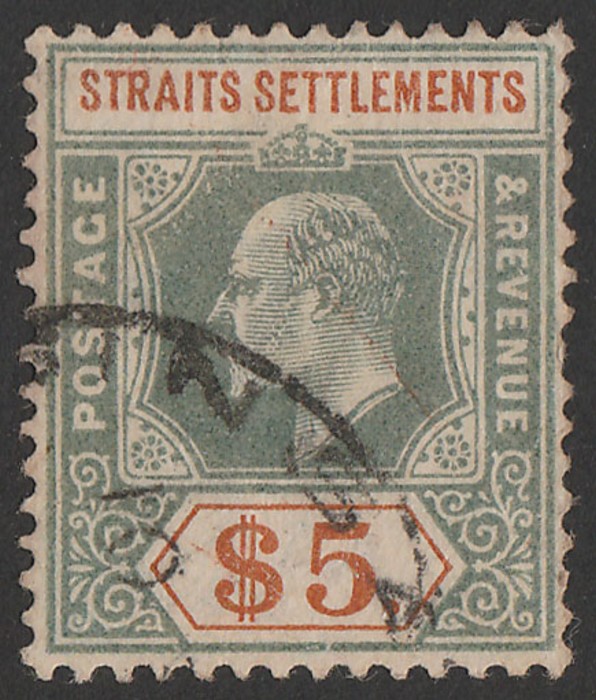 dull green & brown-orange, wmk crown CA. Postally VFU with Singapore cds, nice colours. Scott 104 cat US$180, SG 121 cat £225. Quite rare postally used as vast majority are F/C. (P) (Image1)