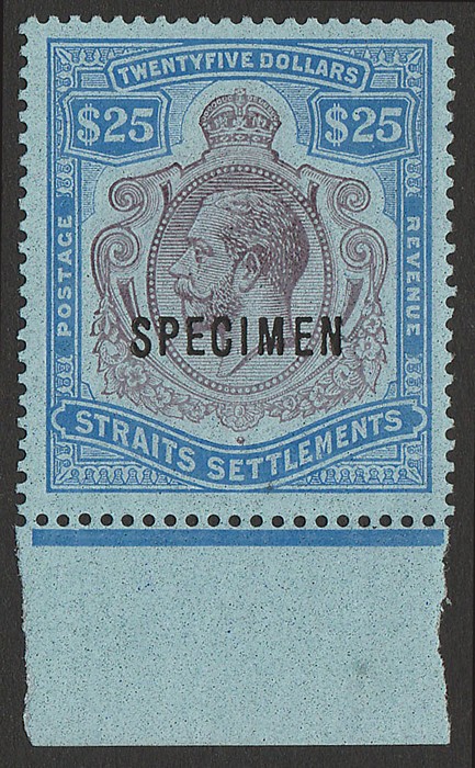 purple & blue on blue, opt SPECIMEN, wmk script. Superb fresh MNH, bottom marginal. Scott 202 cat US$425 for M, SG 240bs cat £450 for M, should be at least double, £900 MNH (normal cat £1500 M). Rare so nice. (P) (Image1)