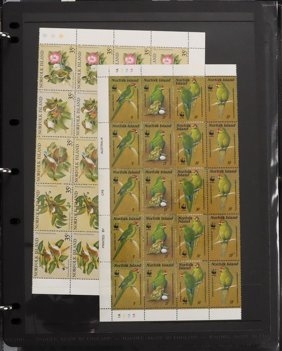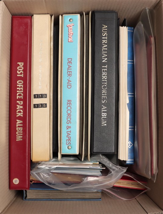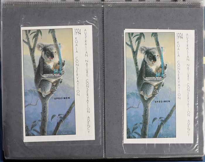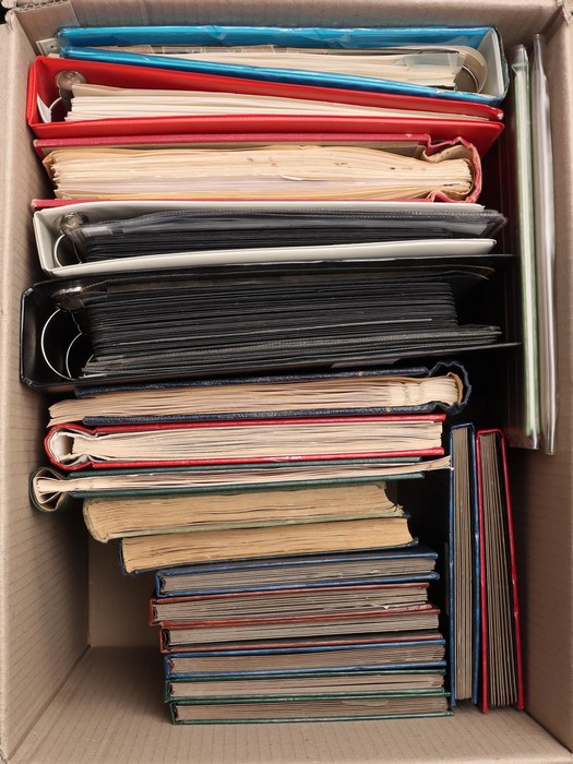 668 imageImpressive two carton lot with Australia 1980s Koala Research M/Sheet collection MNH (30, FV $160), 1980s Pic/Commem acc (100s) in nine small black pg s/books, plus 1966-92 Seven Seas hingeless pgs with scattered contents. China (PRC) 1992 & 1993 year folders, plus 1993 Commem collection & 1992 Dynhuang Fresco Stamps in 2 red binders. Norfolk Is 1947-52 Seven Seas illustrated album. PNG 1985 & 1986 Year Albums. Black binder with over 100 Thematic M/Sheets inc Indonesia 1996 Joint Issue Cuscus booklets (4, cat $400), plus Birds inc NZ 1960s & 1966 Health M/Sheets, African Wildlife/Fish, Butterflies, plus MNH sets (100) inc Norfolk Birds, Nauru Butterflies & Russia Wildlife. World collection in 4 springback albums, strength in Pakistan 1947-74, Australia & GB. Also 60 hagners in binders, 2 empty FDC albums & 2 Triumph albums with mixed contents. 30+ albums/folders in total, mixed MNH/G-F/VFU. (Few 1000) (Image1) (Image2) (Image3) (Image4) (Image5) (Image6) (Image7) (Image8) (Image9) (Image10) (Image11) (Image12) (Image13) (Image14) (Image15) (Image16) (Image17) (Image18) (Image19) (Image20) (Image21) (Image22) (Image23) (Image24) (Image25) (Image26) (Image27) (Image28) (Image29) (Image30) (Image31) (Image32) (Image33) (Image34) (Image35) (Image36) (Image37) (Image38) (Image39) (Image40) (Image41) (Image42) (Image43) (Image44) (Image45)