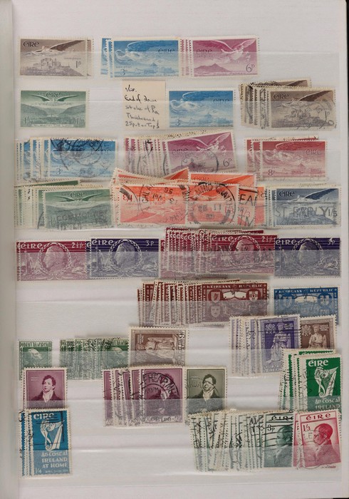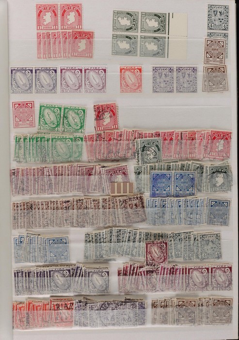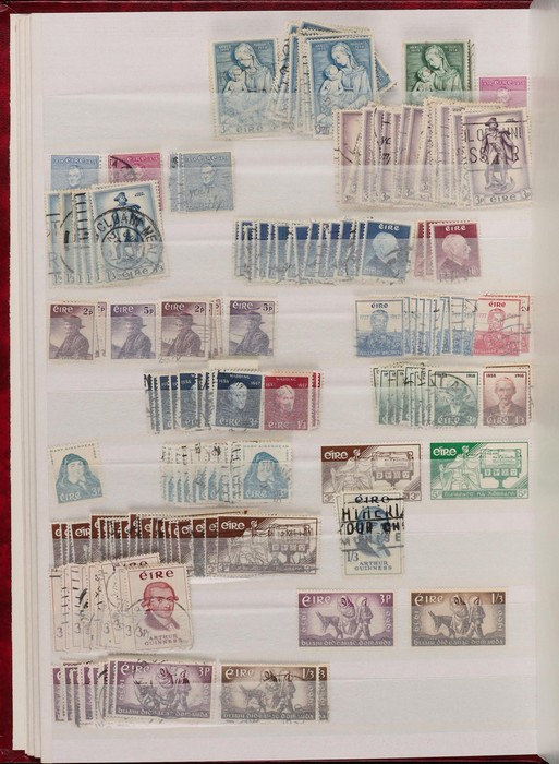 681 imageIreland: 1922-2000s collection/accumulation with range of diff 1922 opts (93) to 2/6 (7) & 5/- (3), total SG cat £2200. 1922 Pic Def set M/U (£100), plus Coils (5, £410), then comp to 1975 many both M & U (£900) & to finish this binder another 800+ extras, mostly U, many 5-20+ of each. Then Vol 2 starts at 1976 on to 1996 (£600) erratically arranged with all vertical types 1d, then the horiz types, probably comp, again many both M & U, plus scattered to 2005. Vol 3 (£300) booklets (20) inc Prestige types, M/Sheets & sheetlets (34) & more M & U extras 1920s-60s etc. Vol 4 is Postal History (100) with some early GB used in Ireland, 1830s-40s stampless types, then Commercial Mail inc UK, FDC from early, PPC (4) etc. Total SG cat £4500+ = A$9000, plus the covers. (3000+, 80+ covers) (Image1) (Image2) (Image3) (Image4) (Image5) (Image6) (Image7) (Image8) (Image9) (Image10) (Image11) (Image12) (Image13) (Image14) (Image15) (Image16) (Image17) (Image18) (Image19) (Image20) (Image21) (Image22) (Image23) (Image24) (Image25)