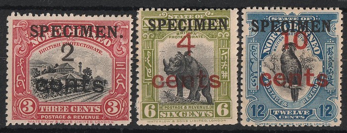 on 3c - 10c on 12c opt SPECIMEN. VF fresh M. SG 186s-188s cat £120. (3). (P) (Image1)