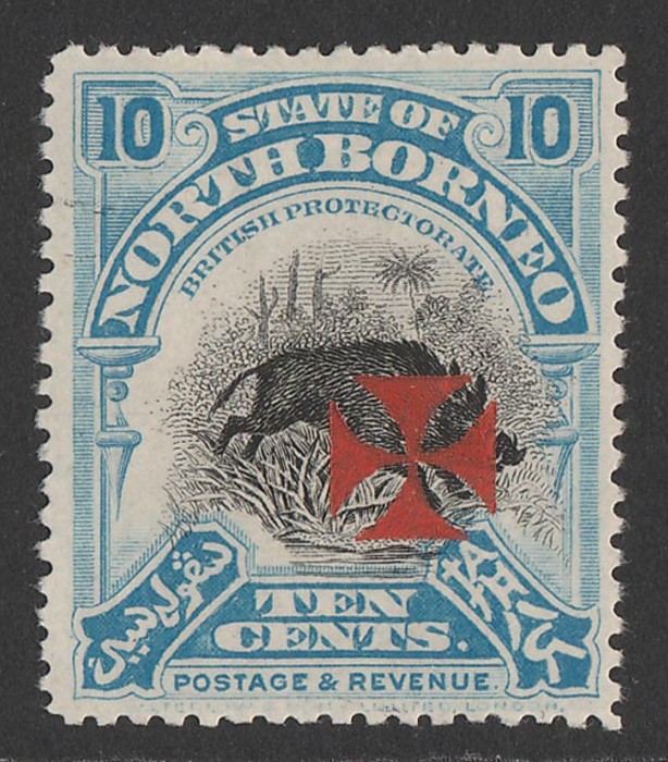 vermilion opt Wild Boar 10c black & blue. VF fresh M. SG 196 cat £65. (Image1)