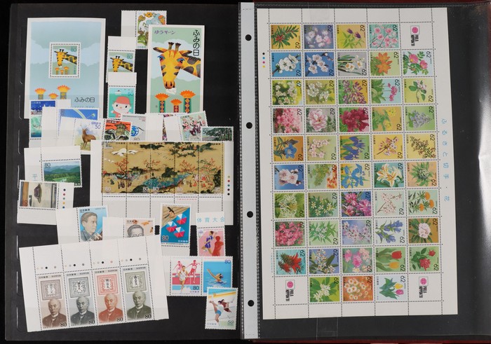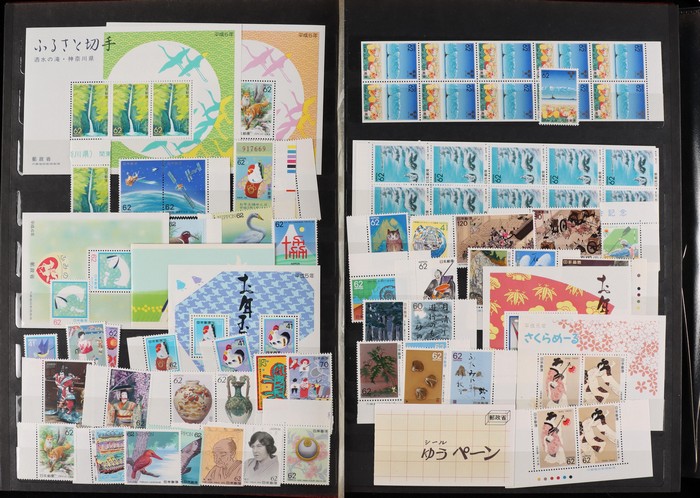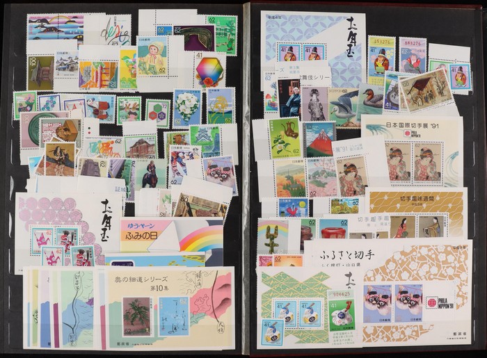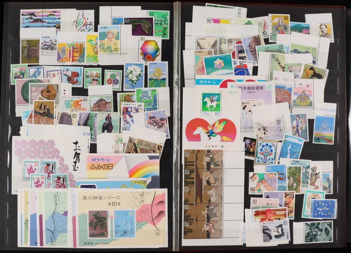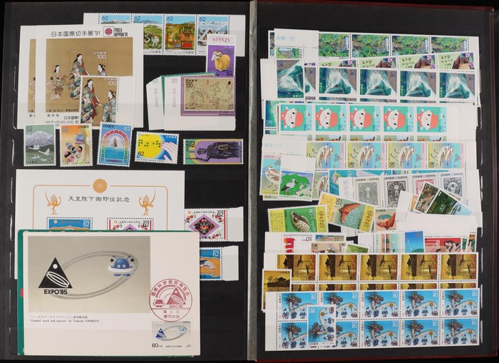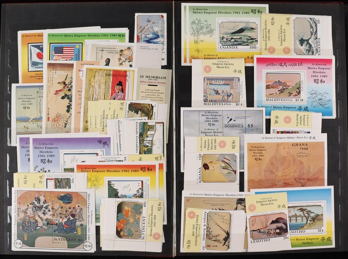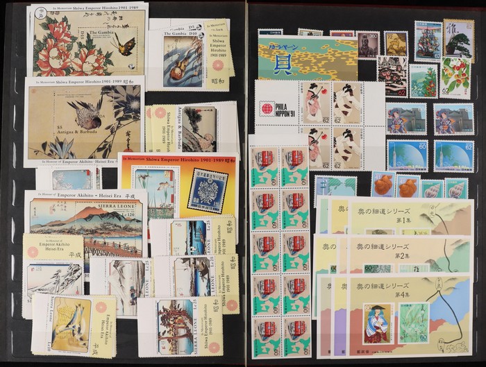 691 imageJapan collection 1980s-90s in Kek s/book & loose MNH sets (blks & singles) inc Pictorials, Defs booklets & M/sheets. FV 61,000Y. Also inc Omnibus collection from many diff countries of sets & M/sheets in memoriam for Emperor Hirohito & Commems for Emperor Akihito. 38 M/sheets & 20+ sets plus some extras largely VF. Very messy so hard to assess. (Many 100s) (Image1) (Image2) (Image3) (Image4) (Image5) (Image6) (Image7)