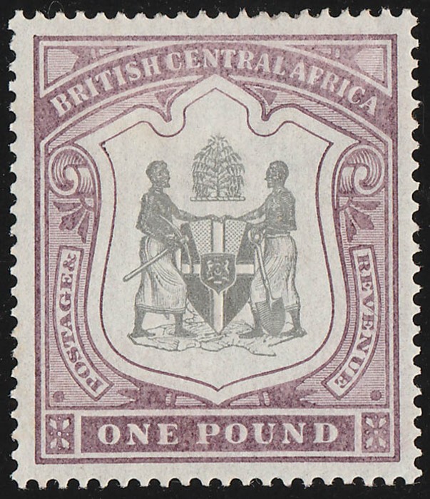 £1 black & dull purple, 2nd issue. VFU, Blantyre squared-circle. Scott 55 cat US$275+. SG 51 cat £500. (P) (Image1)