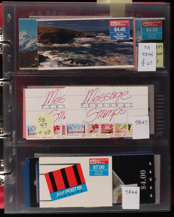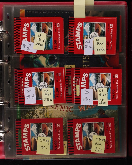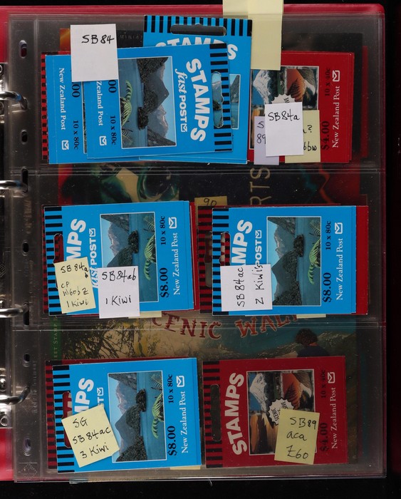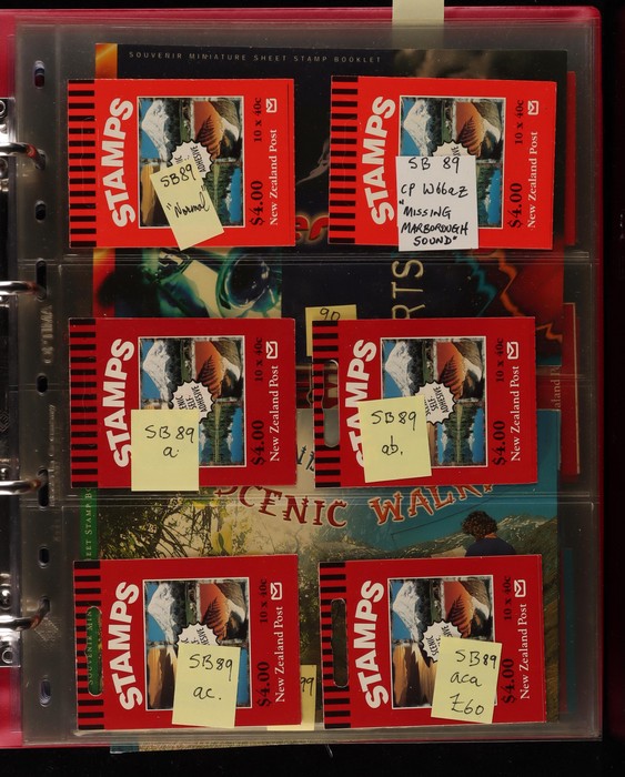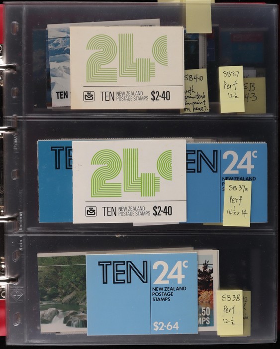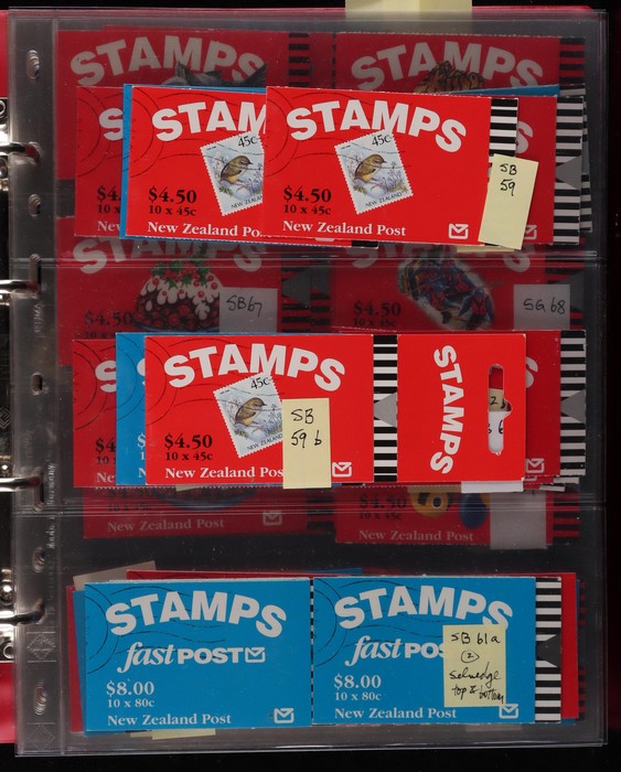 728 imageNew Zealand 1967-2014 booklet collection in Lighthouse binder with slipcase inc SB 26-176 with different covers, few varieties inc diff perfs, noted SB 89aca stamps printed on backing paper (cat £60), fairly comp, also premium booklets SP 1-11. Odd tones mostly VF. All diff. FV alone $800+. SG cat £1800+ = A$3600+. Pages, binder & slipcase retail $150+. (150 + booklets) (Image1) (Image2) (Image3) (Image4) (Image5) (Image6) (Image7) (Image8) (Image9) (Image10) (Image11) (Image12)