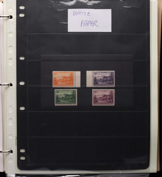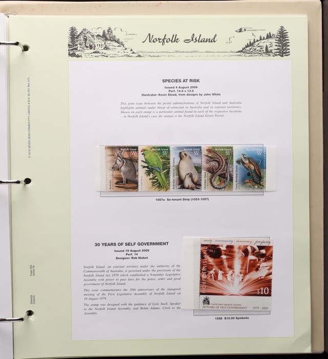 731 imageNorfolk Island: 1947-2000 & 2007-2011 collection in 2 Seven Seas illustrated albums with 1947 Ball Bay set M, then generally fresh MNH inc Ball Bay white paper set of 4 (retail $150), 1953 Pics to 5/- brown Bridge, 1960 Pics to 10/- Bird plus extra 10/- opt SPECIMEN, 1966 opts set, 1967 Ships, 1969 Bird & most other decimal Pic sets to $10, retail $950 to end 1990 plus $430 face value for the others, total $1380. (Image1) (Image2) (Image3) (Image4) (Image5) (Image6) (Image7) (Image8) (Image9) (Image10) (Image11) (Image12) (Image13) (Image14)