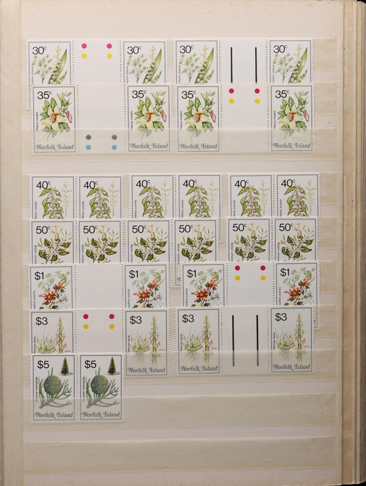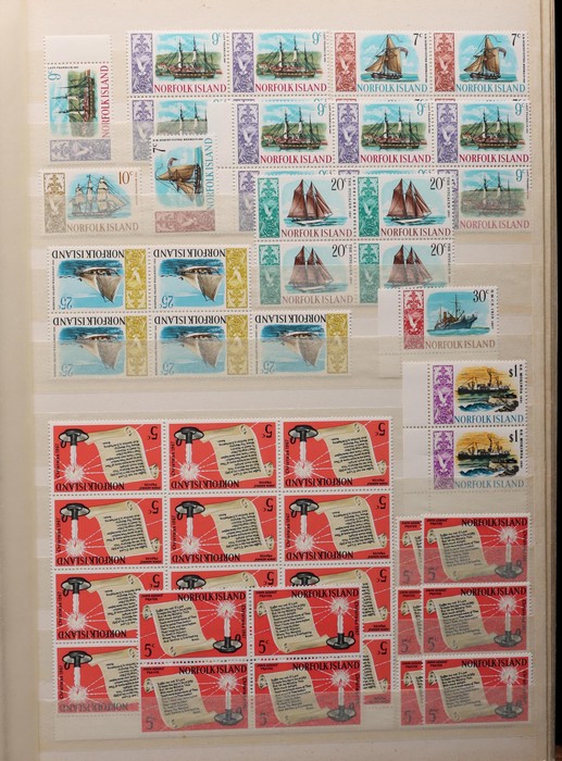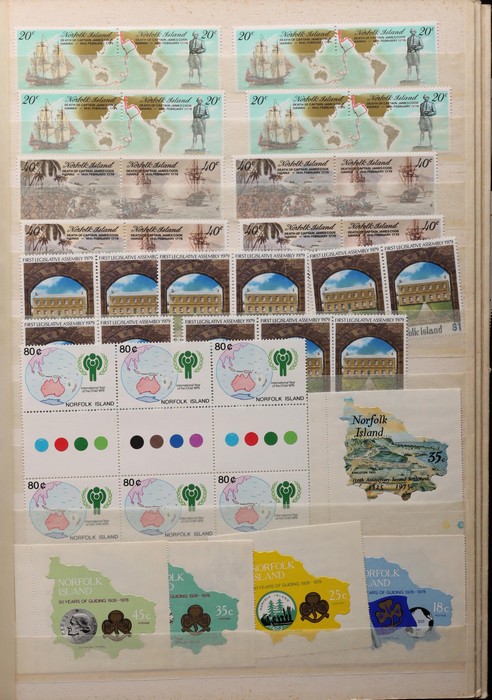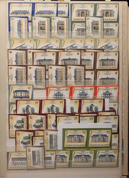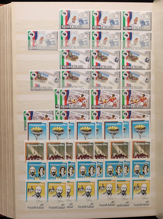 740 imageNorfolk Island: 1960s-80s Dealer MNH 'Back-Up' stock in thick Lighthouse 60 pgs s/book with good selection of Pic/Commem sets inc 1967 Ships, 1976 Butterflies, 1981 Aircraft, 1984 Flowers, Christmas & others with many blks & multiples. Odd CTO, nearly all fresh MNH, FV $530. (many 100s). (Image1) (Image2) (Image3) (Image4) (Image5) (Image6) (Image7) (Image8) (Image9) (Image10) (Image11) (Image12) (Image13)