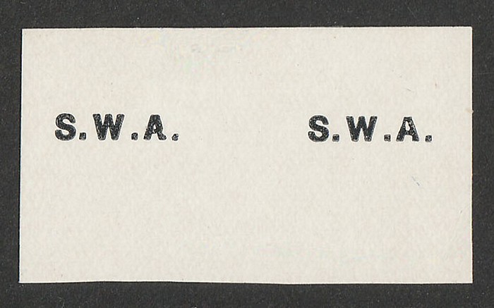 Afrika' & 'South West Africa' opts, (SG type D1/D2) imperf proof of opt only bilingual horiz pr on white wove paper. VF UN as made, all 4 margins. SG D33(p). (P)