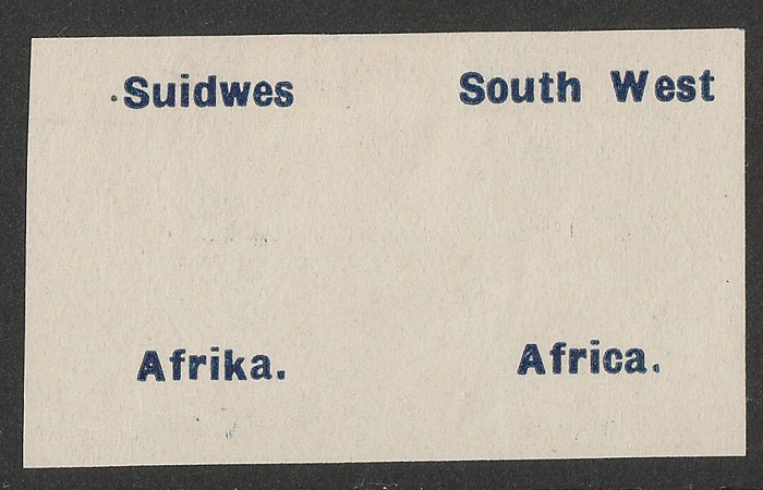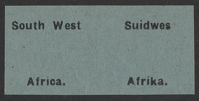 Afrika' & 'South West Africa' opts, (SG type D1/D2) imperf proof of opt only bilingual horiz pr on blue wove paper. VF UN as made, all 4 margins. SG D33(p). (P) (Image1)