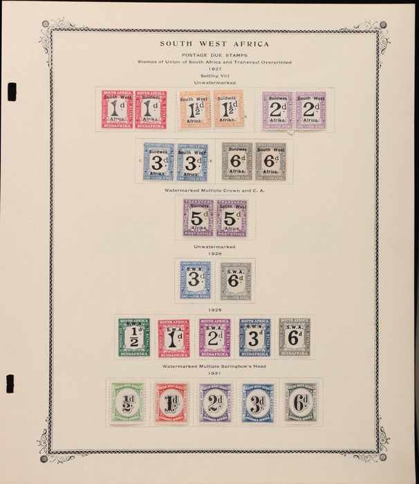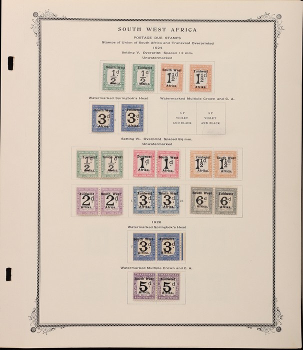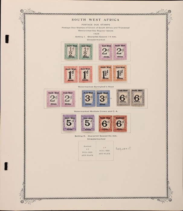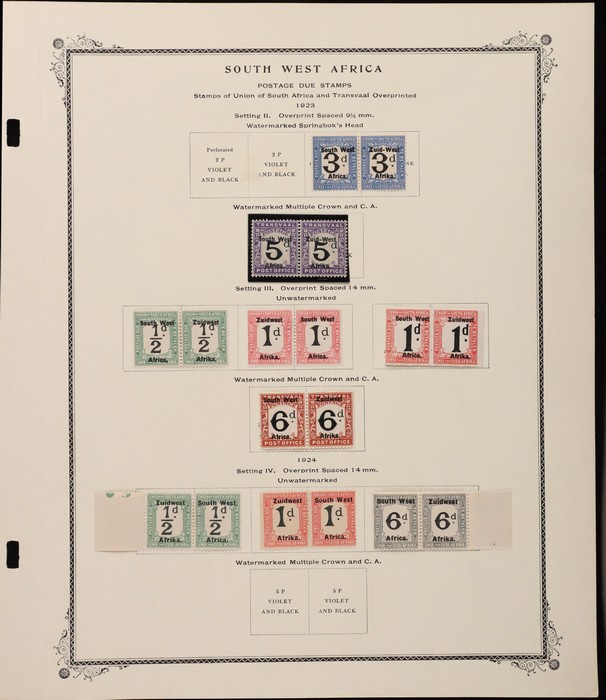 collection on album pgs inc 1923 Setting I opt ½d-6d horiz bilingual prs. 1923 Setting VI opt ½d-6d horiz prs. 1923 Setting III opt range to 6d prs. 1927 Setting VIII (sideways Africa) opt set to 6d horiz prs. 1931 set to 6d. F-VF fresh