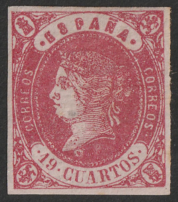 carmine, on bluish paper wmk loops. VF fresh UN, 4 margins. Scott 37a, SG 47 cat £325, Edifil 40 cat €375. (P) (Image1)