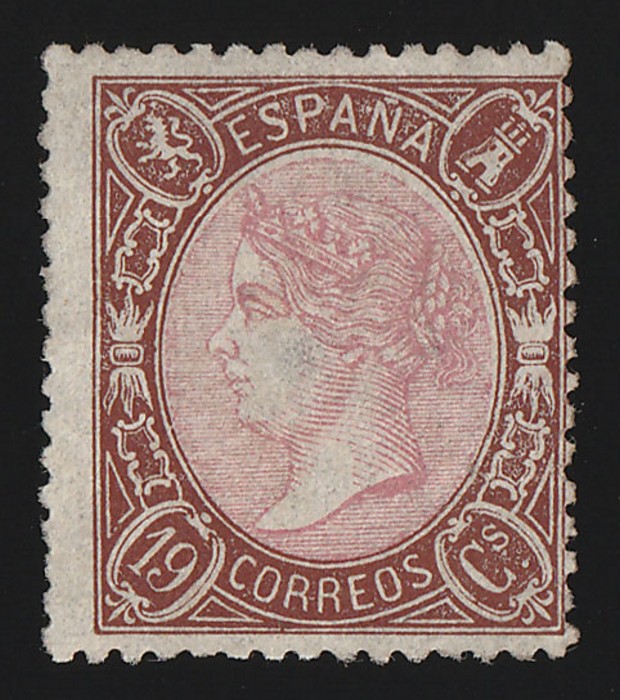 & brown, perf 14. Fresh UN, tiny thin but VF appearance with nice colour. Scott 70, SG 89 cat £4250, Edifil 77 cat €5100. Extremely rare in genuine unused condition. (P)