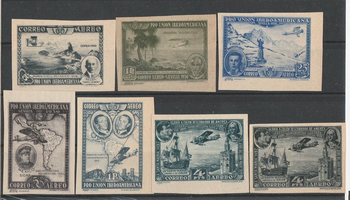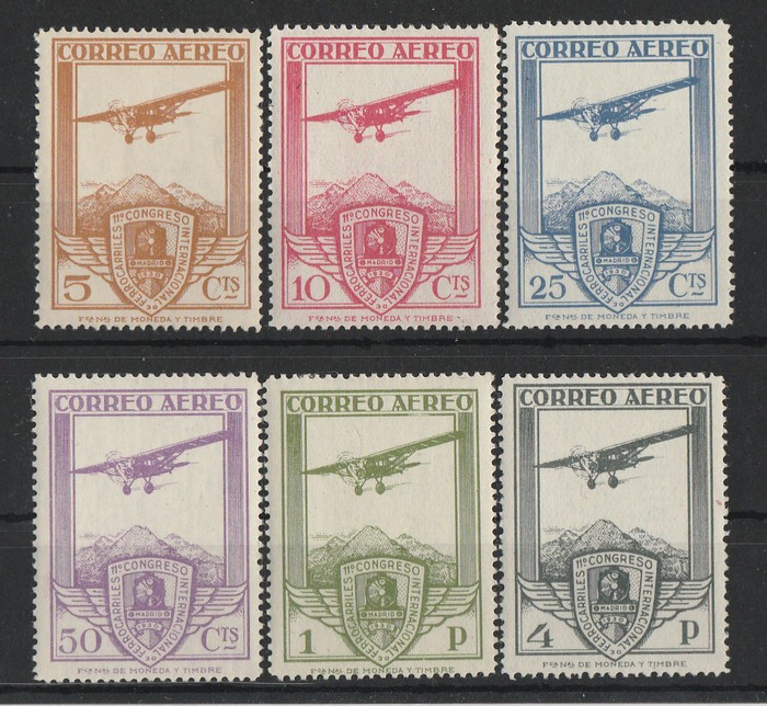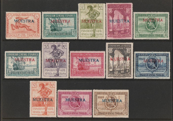 Barcelona Exhib set 1c-10P, opt large MUESTRA (Specimen) with A000,000 controls nos in blue on back. F-VF fresh M. SG 502-14 cat £225, Ed 434M-447M cat €715. Very scarce set. (13). (P) (Image1)