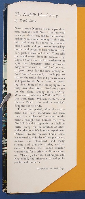 831 imageNorfolk Island Story' by Frank Clune, pub 1967, 308 pgs inc bibliography plus 26 photo plates. VGC, DJ cover. (Image1) (Image2) (Image3)