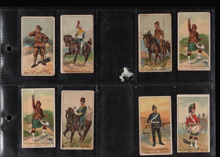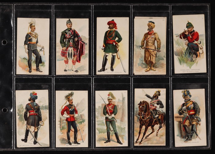 839 imageAmerican Tobacco Co 1890s Military Uniforms Series C (unframed). 45 mixed with GB & British Colonial types. F-VF, cat £675 = A$1350. (45) (Image1) (Image2) (Image3)