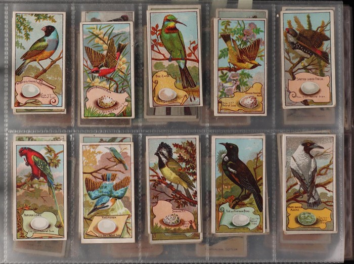 845 imageCollection in album with BDV Who's Who in Australian Sport (90 double sided cards, cat £400), American Tobacco Co 1901 Comic Scenes (30 mixed, cat £240), 1898 National Flags & Arms (14, cat £180), Snider & Abrahams 1912 Animals & Birds (40, £160). British Australasian Tobacco 1903 Flags of all Nations (14, cat £140). Wills 1910 Aviation (110 mixed, £330), 1912 Birds of Australasia (40, £70), 1913 Riders of the World (55 mixed, £100), 1913 Animals (cut-outs, 59/60, cat £70). Also misc cards inc 1920s Cricket (30), Amalgamated Press Wonderful London (16, £96) & Purina Grain Foods Wonders of Modern Aircraft (24 mixed, £120). Variable G-VF, odd duplicate. Total cat over £1900 = A$3800. (Image1) (Image2) (Image3) (Image4) (Image5) (Image6) (Image7) (Image8) (Image9) (Image10) (Image11) (Image12) (Image13) (Image14) (Image15) (Image16) (Image17) (Image18) (Image19) (Image20) (Image21) (Image22) (Image23) (Image24)