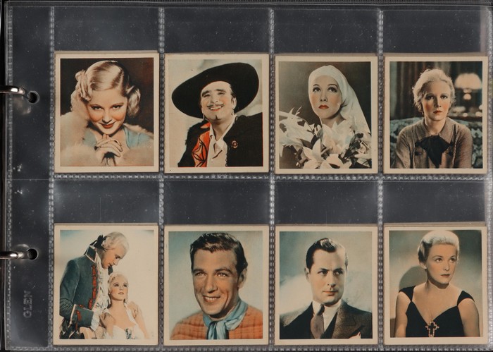 846 imageCollection in album with Anonymous 'Modern Movie Stars & Cinema Celebrities' (Teofani & Co London 1934) set of 48 (cat £60). Godfrey Phillips 1936 Annuals (Flowers, set of 50, £15), Famous Crowns (1938, £15), Film Stars (1934, £40), The Old Country (1935, £40), Ships that have made history (£20), Shots from the films (1934, medium size set of 48, £40), Nicholas Sarong & Co 1923-1925 Celebrities & Their Autographs (medium size set of 100, £120). Also Hoadley 1940 'Wild West' set of 50, cat £110. Nine sets in total, generally F/VF. 2022 CTCC cat £460 = A$900. (Image1) (Image2) (Image3) (Image4) (Image5) (Image6) (Image7) (Image8) (Image9) (Image10)