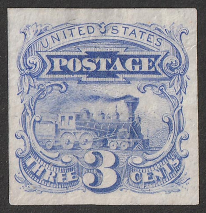 ultramarine plate proof on India paper, imperf, in issued colour. VF UN as made, 4 margins. SG 116(p) cat £250 as normal. Sc 114P3 cat US$45 (normal cat US$225).