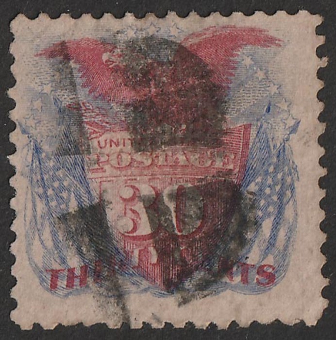 30c orange F grill (about 9x13mm). G-FU, cork pmk. Scott 100 cat US$1000. SG 102 cat £950. (P) (Image1)