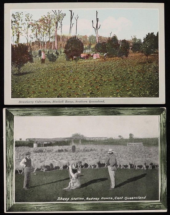 892 imageAustralia - Queensland, Semi-Official issues by the Intelligence & Tourist Bureau, wide range of Scenic types inc Mt Morgan, Whitsunday Passage, Woombye, Stanthorpe etc, Farming types inc Cattle, Sheep, Pineapples, Paw Paws, Strawberries, Wheat, Rubber etc. Mostly unused, few with QLD stamps, one with 2½d Kangaroo 1st wmk. Some colour. Mostly VG-VF. All diff. (28) (Image1) (Image2) (Image3) (Image4) (Image5)
