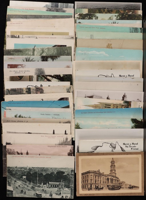 896 imageAustralia - South Australia Adelaide collection inc General Views, Public Buildings, Parks & Botanical Gardens, good range of Animated Street Scenes with Trams & Horse-Drawn Vehicles. About half used with SA stamps. 25+ colour. Mostly VG-VF. All diff. (66) (Image1) (Image2) (Image3) (Image4) (Image5) (Image6)