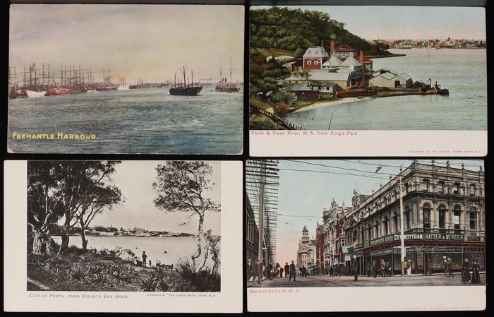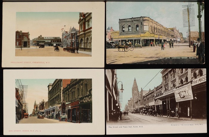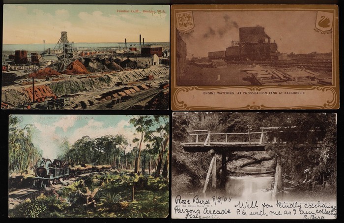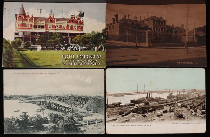 900 imageAustralia - Western Australia collection inc Views of Swan River & Kings Park, Perth Animated Street Scenes (8), Public Buildings, Albany (13), Fremantle (11) inc Street Scenes & Old Bridge, others inc Boulder Mine, Train Engine Watering at Kalgoorlie, Log Train in Jarrah Forrest with 1d swan, one with ½d green Kangaroo. Mainly unused, some used in Belgium. 25+ colour. Mainly G-VF. All diff. (75) (Image1) (Image2) (Image3) (Image4) (Image5)