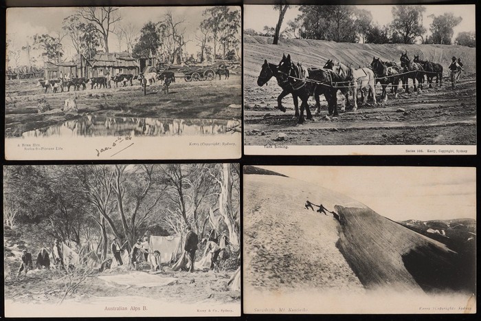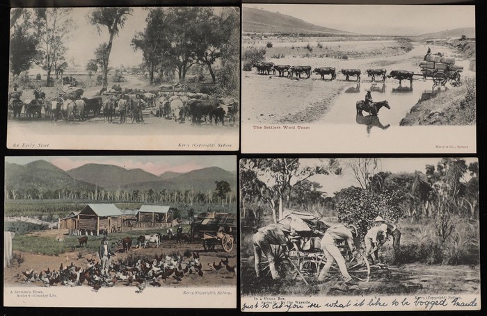 909 imageAustralia - Country Life by Kerry inc Camel Caravan, Mail Coach, Gold Prospectors, Mt Kosciusko, Tank Sinking, at the Ferry, Bullock Teams, Wool Farming + others. About half used with QLD, NSW & SA stamps. Mostly VG-VF. All diff. (30) (Image1) (Image2) (Image3) (Image4) (Image5) (Image6) (Image7) (Image8)