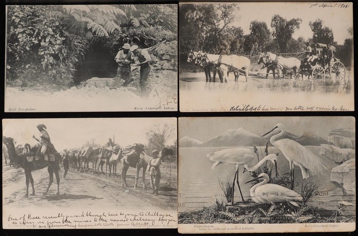 902 imageAustralian Artists collection with JA Turner (5) inc A Dangerous Visitor, A Good Bush Crop, Dingoes About & On Our Selections. P Campbell (2) with The Bullock Team & The Rabbit Dealer. JM Cartle Birds (2 diff). Hutchings (7 diff). Neville (2) with Galahs & King Parrott. Scheltema On The Road. O Stahe (15) with Animals (5) & Birds (10). Mixed UN/U, generally F-VF condition. (34) (Image1) (Image2) (Image3) (Image4) (Image5) (Image6) (Image7)