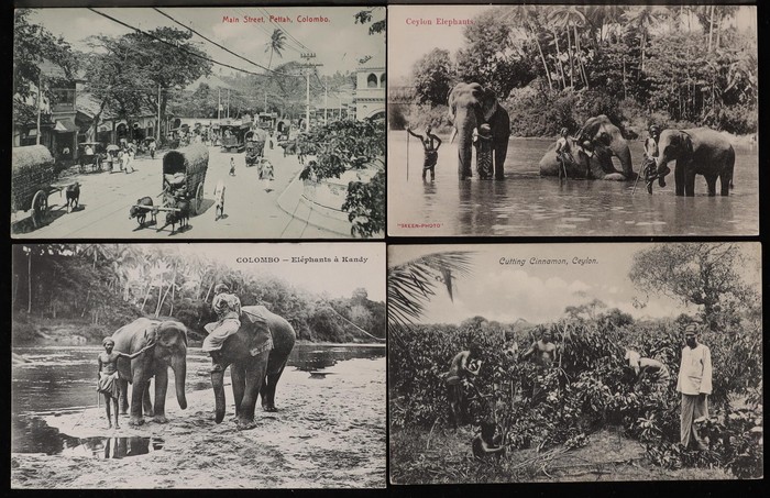 932 imageCeylon collection mostly pre WWI inc Elephants Working & Bathing (8), tea pickers, Animated Street Scenes, Villages, Bullock Wagons, Rickshaws, Temples, Canoes, Harbour Scenes etc. About 50% unused B&W some colour. Mostly G-VF. All diff. (88) (Image1) (Image2) (Image3) (Image4)