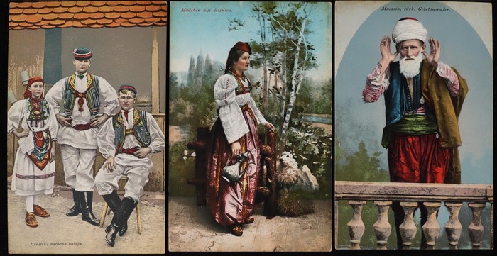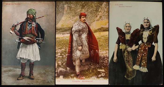 944 imageEurope. Early collection of coloured cards depicting Traditional Costumes, Male & Female, from Bosnia, Herzegovina, Montenegro, Zeeland, Friesland, Normandy, others. Mostly unused, many colour. Mostly VG-VF. All diff. (65) (Image1) (Image2) (Image3) (Image4)
