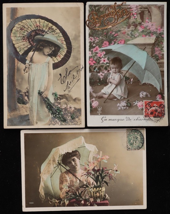 946 imageFashion, Glamour & Romance mostly early C20th, all with Models having Umbrellas & Parasols, all early period, many undivided backs, many Postally Used with stamps, interesting social history. Mostly VG-VF. All diff. (88) (Image1) (Image2) (Image3) (Image4) (Image5)