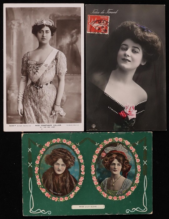 947 imageGlamour early period photographic cards, Showgirls & Actresses, European & British with wide range of fashions. Mostly used with GB, French stamps. 20+ colour. Mostly VG-VF. All diff. (1) (Image1) (Image2) (Image3) (Image4)