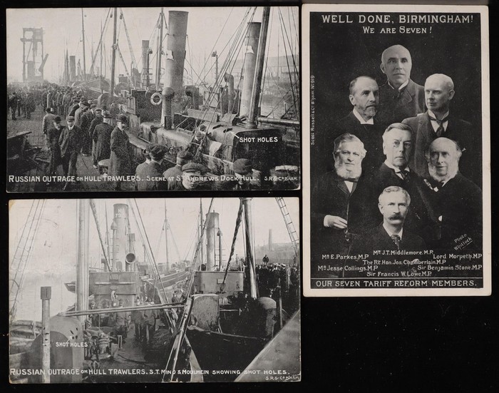 950 imageGreat Britain Political. Early C20th Joseph Chamberlain & Fiscal Reform (7), others relating to Free Trade & Fiscal Policy (6), Russian Outrage on Hull Trawlers (3), Patriotic types, many real photo types of Politicians inc Churchill, Chamberlain, Grey, Balfour, Asquith, Campbell-Bannerman etc. Mostly VG-VF. Appear all diff. (72) (Image1) (Image2) (Image3) (Image4) (Image5)