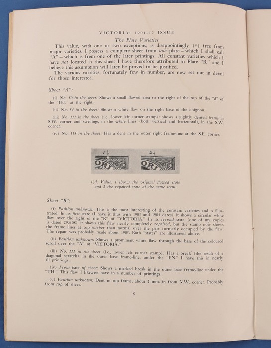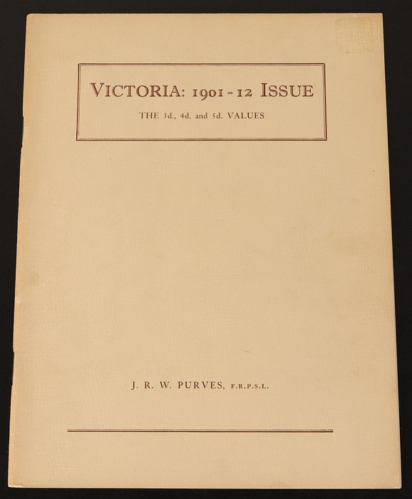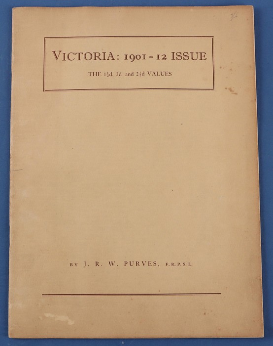 1901-12 issue, The 1½d, 2d & 2½d values by JRW Purves, 29 pgs, Hawthorn Press 'Monograph No 4' pub 1954. Outer covers sl scuffed, contents clean. (Image1) (Image2)