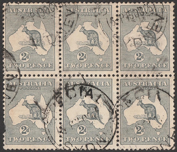 Mostly F-VFU, LL stamp faults. 'Special Sydney' cds. SG 24 cat £84++. ACSC 6A cat $150++. Rare large postally used multiple. Ex Sandy. (6). (Image1)