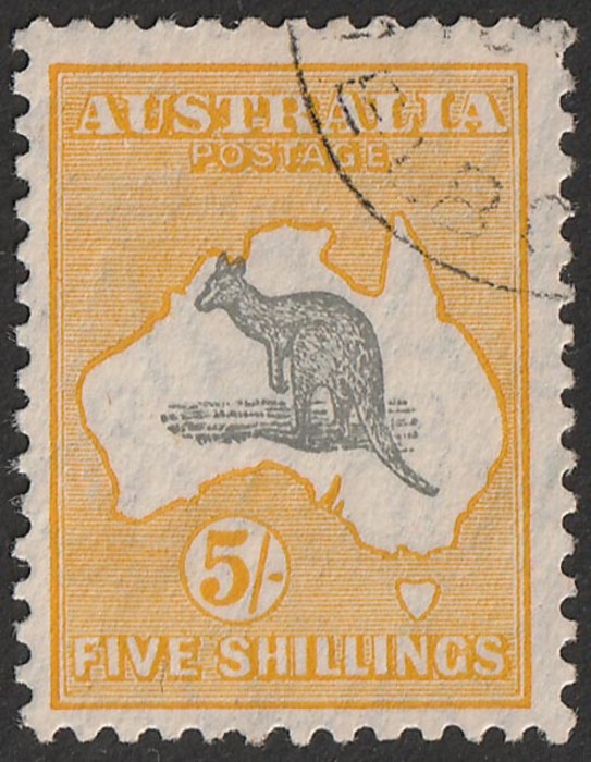 yellow-orange variety 'Spencer's Gulf short & thick' & roo sl misplaced downwards into Bight. Superb fresh MLH. SG 111(var). ACSC 45B(0)I cat $950+. (P) (Image1)